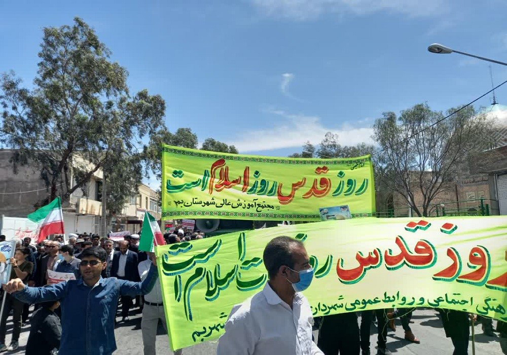 دانشگاهان مجتمع آموزش عالی بم با حضور در راهپیمایی روز قدس جمعه 25 فروردین از مردم مظلوم فلسطین حمایت کردند.