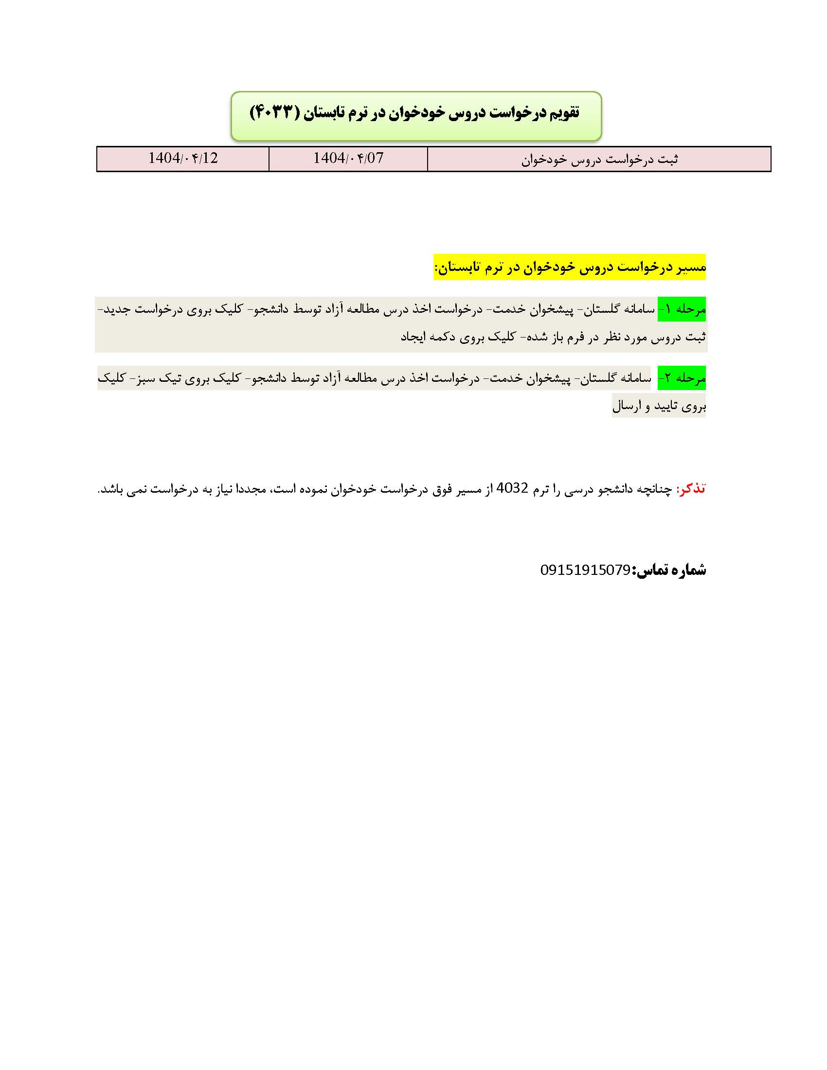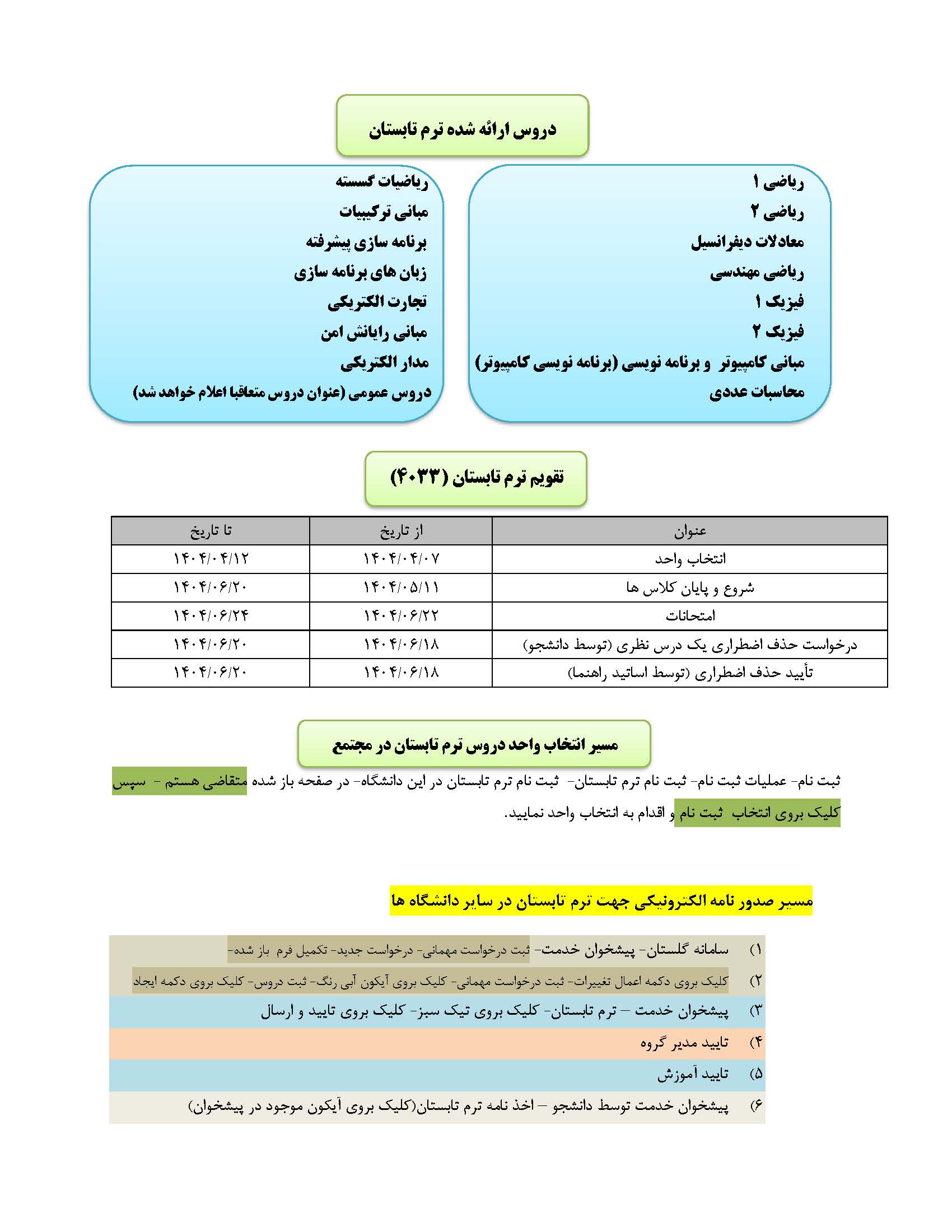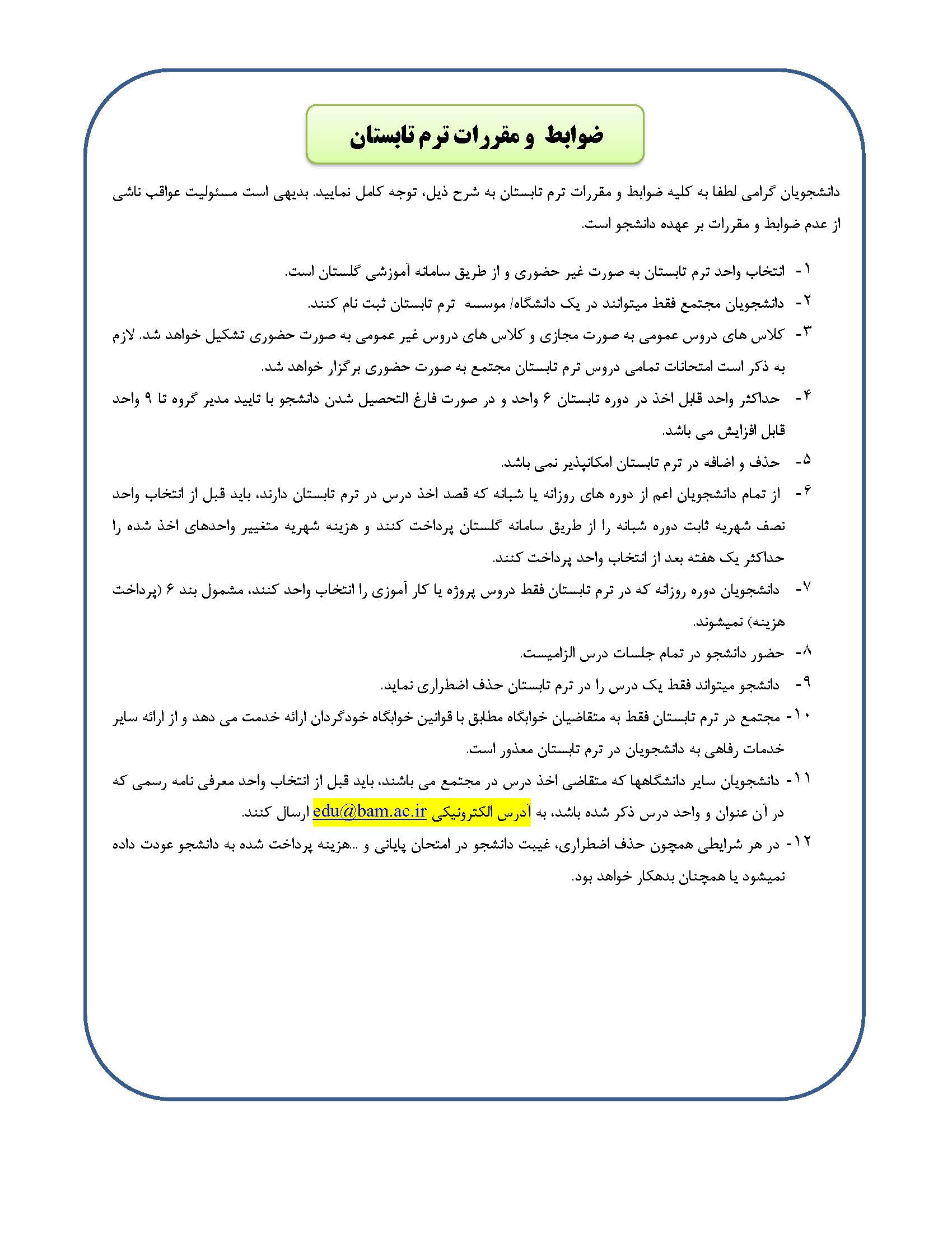 ضوابط و مقررات ترم تابستان (4033) مجتمع آموزش عالی بم