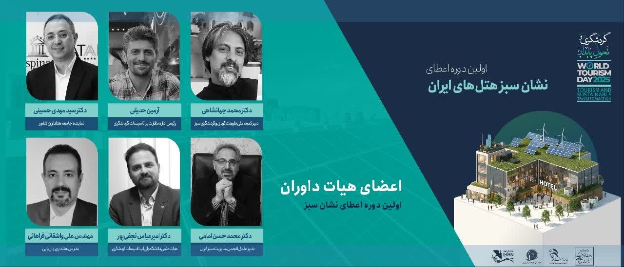 اولین دوره اعطای نشان سبز هتل های کشور با حضور اعضای هیات داوران متشکل از محمد جهانشاهی، دبیر کمیته ملی طبیعت گردی و گردشگری سبز؛ آرمین حدیقی، رئیس اداره نظارت بر تاسیسات گردشگری؛ امیرعباس نجفی پور، عضو هیات علمی گروه گردشگری مجتمع آموزش علی بم؛ مهدی حسینی، نماینده جامعه هتلداران کشور؛ محمد حسن امامی، مدیرعامل انجمن مدیریت سبز ایران و علی واشقانی فراهانی، مدرس هتلداری و ارزیاب برگزار و پس از بررسی مستندات و گزارشهای خوداظهاری ۵۵ هتل، برگزیدگان این دوره را انتخاب و معرفی کرد.