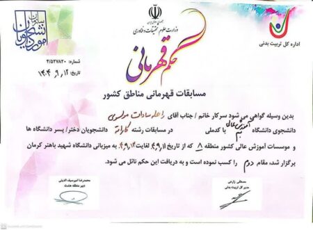 مجتمع آموزش عالی بم کسب این مقام و افتخار را به ایشان و جامعه دانشگاهی و ورزشی مجتمع تبریک عرض نموده و برای ایشان در ادامه راه از درگاه خداوند متعال، آرزوی سلامتی و موفقیت های روزافزون در عرصه های علمی و ورزشی دارد.